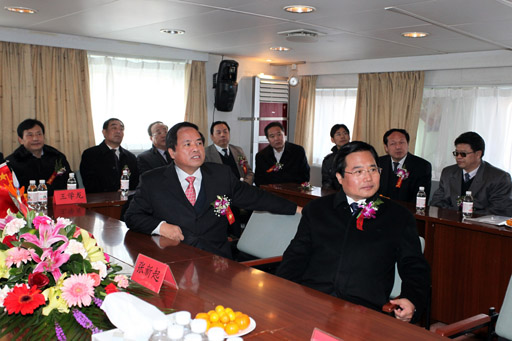 欢迎仪式后国家海洋局党组书记、局长刘赐贵等参观“大洋一号”船及样品