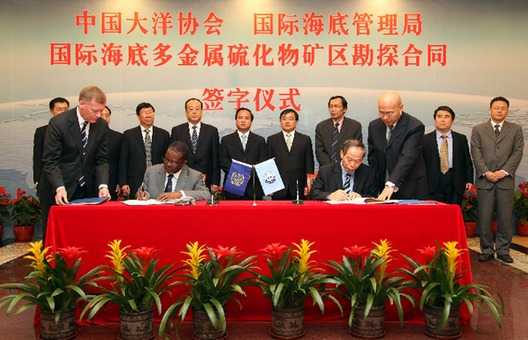 2010年5月7日在管理局通过《“区域”内多金属硫化物探矿和勘探规章》(以下简称“规章”)第一时间,大洋协会审时度势,向管理局首个提出矿区申请,国家海洋局和财政部代表中国政府为该项申请分别提供了担保和财政承诺;2011年7月19日,在管理局第17届会议期间,管理局理事会核准了大洋协会提出的多金属硫化物矿区申请。大洋协会据此与国际海底管理局签订了为期15年的勘探合同,合同区位于西南印度洋洋脊,面积10000平方公里,限定在长度990公里、宽度290公里的长方形范围内。 根据《联合国海洋法公约》,国际海底区域及其资源属于人类的共同继承财产,由国际海底管理局代表全人类组织和控制“区域”内矿物资源的勘探和开发。据了解,国际海底多金属硫化物由海底热液作用形成,富含铜、铅、锌、金和银等金属,主要分布大洋中脊区域,具有巨大的潜在经济价值和良好的开发前景,其赋存的环境对于人类认识海洋具有很高的科研价值,大洋协会依照勘探合同开展区域内的调查,将有利于对海底资源的了解和利用,有利于提高对深海的科学认知水平和有效保护海底环境,有利于带动和促进有关深海技术装备研制迈上新台阶,也有利于实现《联合国海洋法公约》所确立的国际海底活动服务于全人类利益的宗旨。