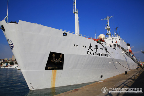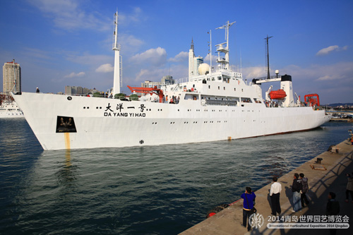 10月19日下午15时许,青岛世园会的流动宣传大使——“大洋一号”科考船,搭载着青岛世园会宣传品和来自青岛市民、世园建设者的邀请函漂流瓶,从青岛起航。