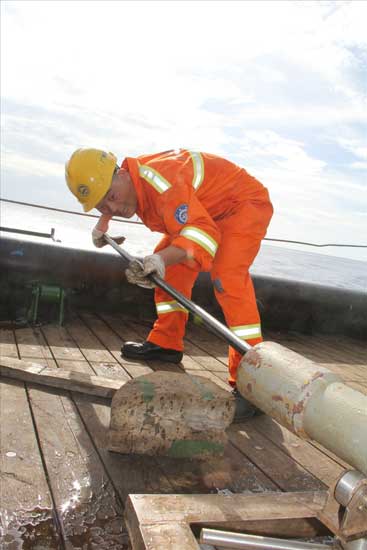 虽然来局里的时间不算太长,但在同事眼中,董国强是个后甲板作业的能手。“干活又稳又准,不怕吃苦。”调查部部门长王俊珠说。2011年,“海洋六号”首次出航,执行大洋第23航次任务。这是时隔8年后,广州海洋地质调查局的调查船第一次出远洋执行科考任务,重要性可想而知。