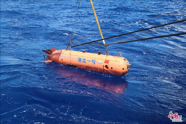 9月7日15点,“潜龙一号”深入水下5000多米,完成光学探测任务使命后,抛下压铁开始上浮水面。“海洋六号”迅速结束漂航状态,赶往预估的上浮地点,等待更准确的方位座标。根据设计,“潜龙一号”在抛载后会发出无线电信号,当它浮出水面时,潜器艏部的铱星通信设备也会不断传回潜器的方位信息。