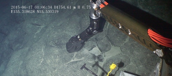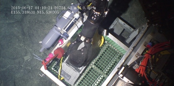 当地时间6月17日,在我国富钴结壳勘探合同区(采薇平顶山),“海马”号ROV利用机械手首次抓取了三块钴结核样品。结核样品大小相当,每块直径约为20厘米,重约6公斤,对于研究海山形成演化、结壳基岩特征和化学组分等,具有重要的科研价值。(特派记者 杨旋 通讯员 杨永)