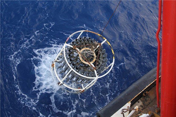 “向阳红10”船抵达热液硫化物作业区 布放CTD入水