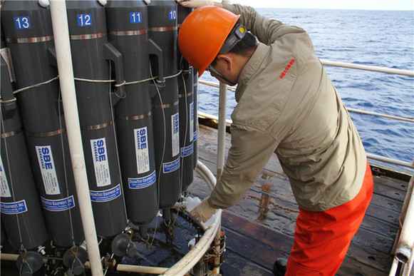 “向阳红10”船抵达热液硫化物作业区 布放CTD入水