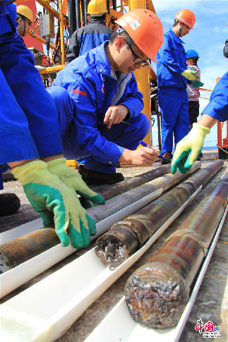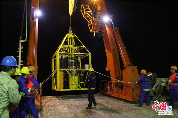 中国网1月22日讯 当地时间1月20日晚间,中国科考船“大洋一号”在位于中国西南印度洋多金属硫化物合同区的玉皇热液区下放中深孔岩心取样钻机,获取热液区岩心样品。“大洋一号”此行赴西南印度洋执行中国大洋第39航次科考任务,主要开展西南印度洋多金属硫化物调查。 (摄影/董冠洋)