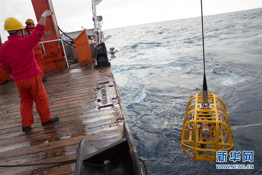 新华社照片,“向阳红10”船,2016年5月15日 用“千里电眼”看海底 5月14日,在“向阳红10”科考船后甲板上,科考队员将光学拖体投放入海。 5月14日,正在西南印度洋执行大洋科考第40航次第四航段科考任务的“向阳红10”科考船开始利用集成化光学拖体考察工作区域。集成化光学拖体是一套基于铠装光电复合缆拖曳作业的高清摄像照相和水体环境探测的集成化拖体,系统主体是由一套高清照相机、一台高清摄像机组成的光学探测系统,同时搭载高度计、浊度计、化学传感器、超短基线等设备。随着科考船慢速前行,科考队员通过拖体可以实时看到上万年未曾有人涉及的几千米深度深海的地质地貌和生物等信息并进行摄影摄像,同时还可以获取深海海域的水体温度、盐度、浊度等各种数据。目前正在“向阳红10”科考船上执行的中国大洋科考第40航次第4航段主要任务是履行西南印度洋多金属硫化物勘探合同,对多金属硫化物进行合同区勘探。该航段将计划完成190公里长度的光学拖体考察。新华社记者金立旺 摄