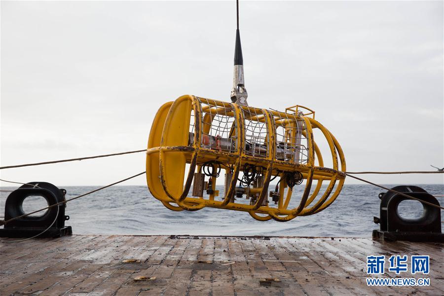 新华社照片,“向阳红10”船,2016年5月15日 用“千里电眼”看海底 5月14日,在“向阳红10”科考船后甲板上,科考队员将光学拖体投放入海。 5月14日,正在西南印度洋执行大洋科考第40航次第四航段科考任务的“向阳红10”科考船开始利用集成化光学拖体考察工作区域。集成化光学拖体是一套基于铠装光电复合缆拖曳作业的高清摄像照相和水体环境探测的集成化拖体,系统主体是由一套高清照相机、一台高清摄像机组成的光学探测系统,同时搭载高度计、浊度计、化学传感器、超短基线等设备。随着科考船慢速前行,科考队员通过拖体可以实时看到上万年未曾有人涉及的几千米深度深海的地质地貌和生物等信息并进行摄影摄像,同时还可以获取深海海域的水体温度、盐度、浊度等各种数据。目前正在“向阳红10”科考船上执行的中国大洋科考第40航次第4航段主要任务是履行西南印度洋多金属硫化物勘探合同,对多金属硫化物进行合同区勘探。该航段将计划完成190公里长度的光学拖体考察。新华社记者金立旺 摄