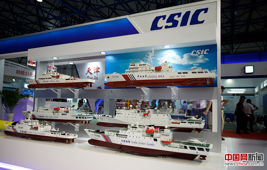 2016年5月19日,北京,中国船舶重工集团展台的船舶模型亮相科博会。当日,第十九届中国北京国际科技产业博览会会展部分在中国国际展览中心正式开幕。中国网记者吴闻达 摄