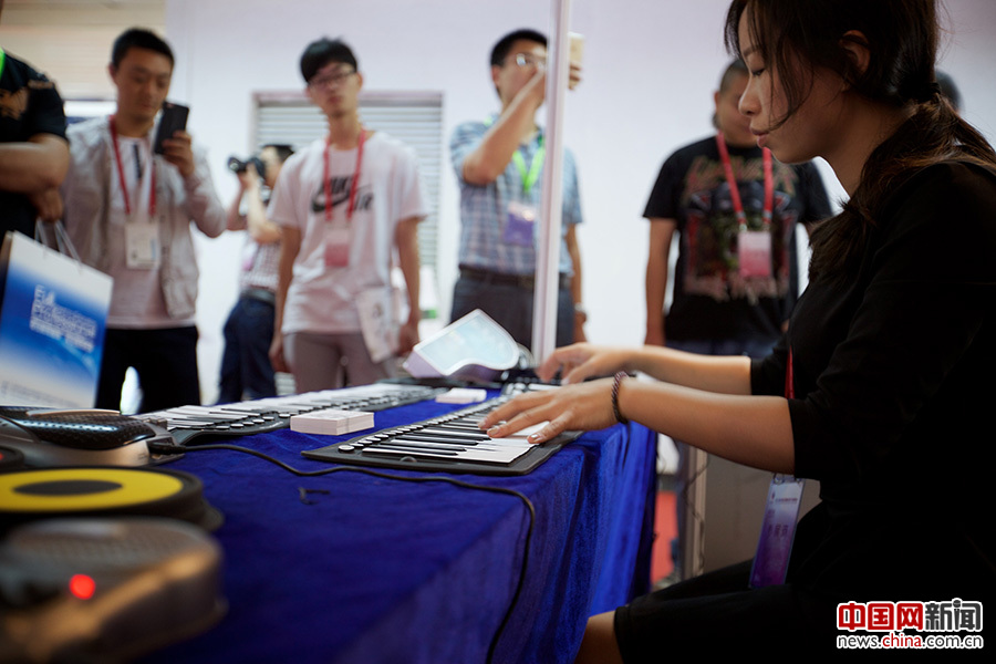 2016年5月19日,北京,平板电子琴亮相科博会。当日,第十九届中国北京国际科技产业博览会会展部分在中国国际展览中心正式开幕。中国网记者吴闻达 摄