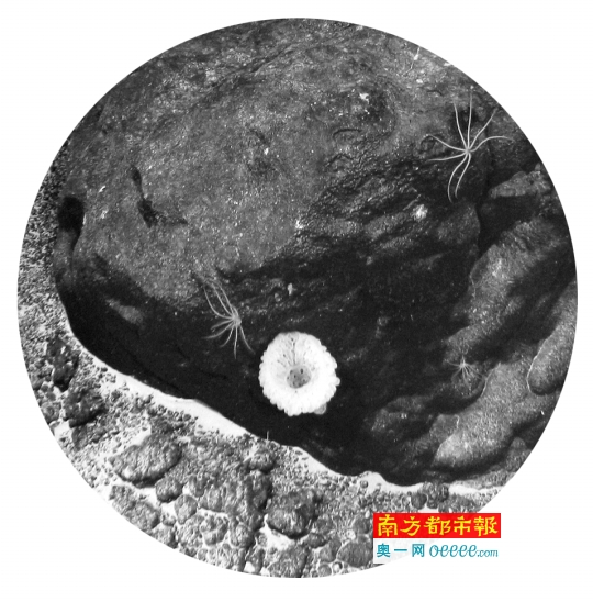 到达海底后,借助潜水器外部的光源,从观测窗口望出去,另一个世界出现在姚会强面前。姚会强告诉南都记者,“蛟龙”号的最大可视范围为10米左右。“我们停靠在海山的斜坡上,山的外表都是富钴结壳。”姚会强说,这样的海底,与我们平时在电视电影中看到的到处都是美丽的海洋生物的海底差别非常大。这里的海底除了布满铺在海山之上的富钴结壳、少量沉积物,很少有其它的东西,显得非常“沉闷”。