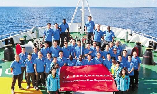 6月1日以来,“向阳红10”在莫桑比克东部海域和塞舌尔北部海域两个调查区研究地形地貌、沉积物厚度、地壳结构等特征,为两国大陆架划界工作提供科技支持。这是我国继2012年帮助尼日利亚开展大陆架调查后,再次与非洲国家开展此类合作,也是中国科学家首次在东非大陆边缘这一科研热点地区开展大陆架调查。来自国内9家科研单位的32名中方专家和来自莫桑比克的6名科学家组成联合科考队密切协作。该航次首席科学家、海洋二所唐勇研究员介绍说,本次调查区域处在西风带边缘,科考队员沉着应对恶劣海况,争分夺秒工作,取得了大量宝贵数据。