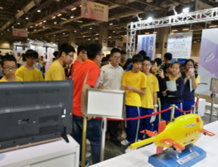 在众多展品中,“蛟龙”号成为展会的主角,参观体验的观众每天都排起长长的队伍,学生们纷纷与蛟龙号合影。长相萌萌的“潜龙二号”也极受小朋友们的青睐,倍受追捧。