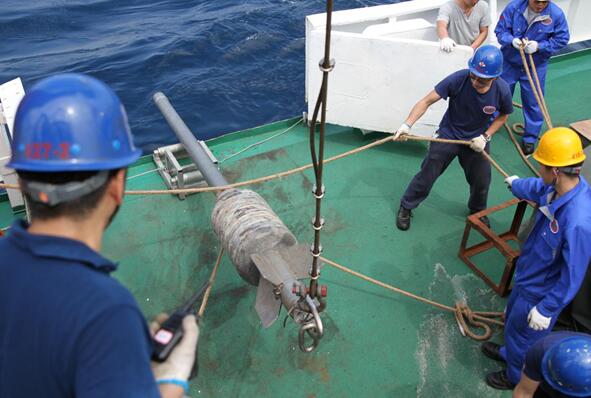 当地时间2月18日20时,“向阳红09”船在中印度洋海盆区获得2.1米长的海底沉积物样品,中国大洋38航次第一航段首个站位采样告捷。当日14时,“向阳红09”船行至采样站位,参航人员与随船科学家布放重约1.5吨、长达3米的重力柱采样器。众人合力将重力柱移到船舷边,吊挂在红色绞车钢缆上,缓缓放入大海。6小时后,采样器自4000米深的海底完成取样回收至甲板,采集到2.1米长的柱状泥质样品。航段首席科学家韩喜球介绍,经初步鉴定,样品中的沉积物类型以深海黏土为主。该样品将在航次结束后由中国大洋样品馆保存研究。(文章转自中国海洋报)