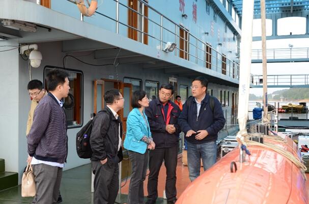 2017年4月26日下午,康健副主任、刘予总工一行赴浙江千岛湖“潜龙一号”无人无缆潜水器湖上试验现场考察,中科院沈自所李硕副所长和课题组成员陪同。