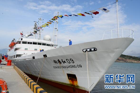6月23日,“蛟龙”号母船“向阳红09”停靠在母港。新华社记者张旭东摄