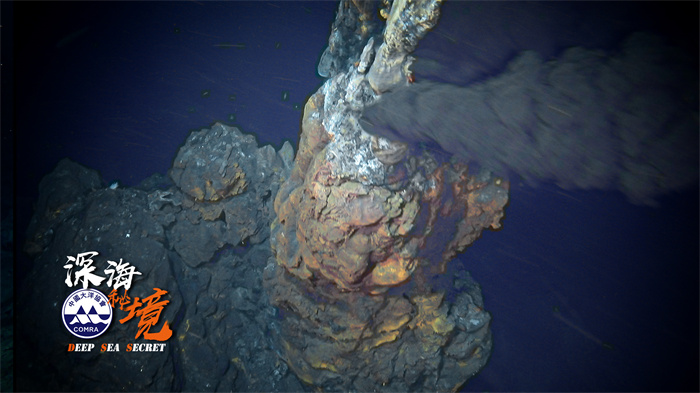 热液区喷发浓烟的硫化物烟囱体