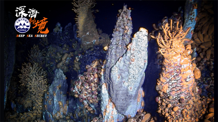 硫化物烟囱体上生活的贻贝、蠕虫和茗荷