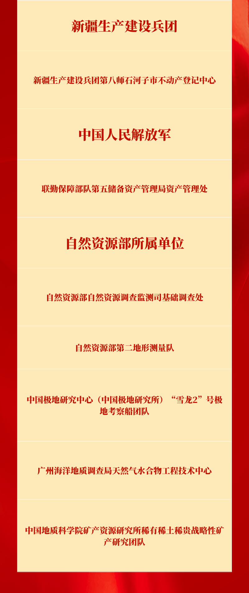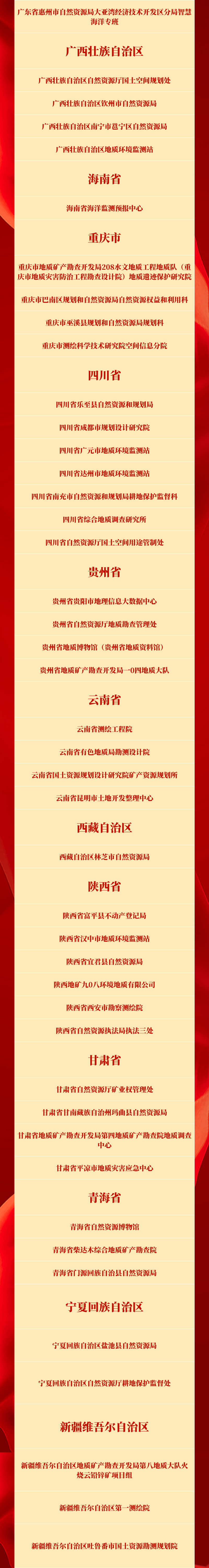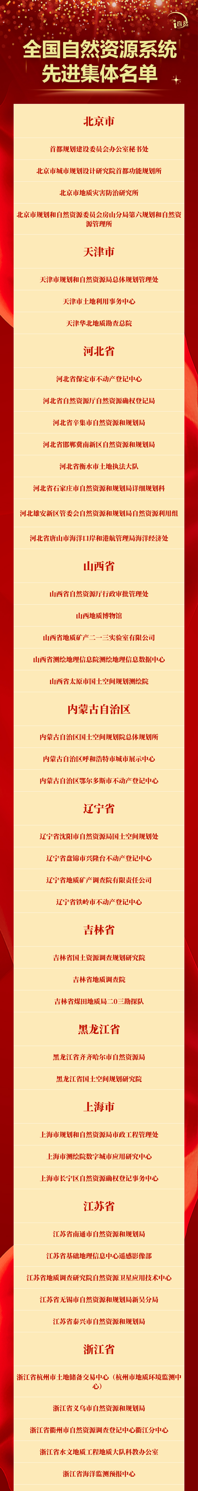 以下为全国自然资源系统先进集体名单